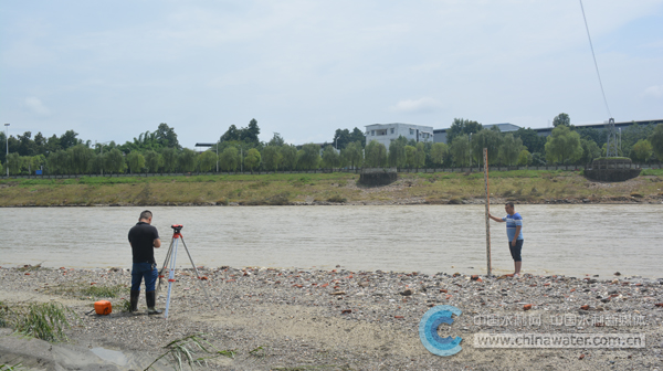 退水后,颜东和搭档们稍作歇息,又投入到作业中。这是他们在建立暂时水尺观测水位